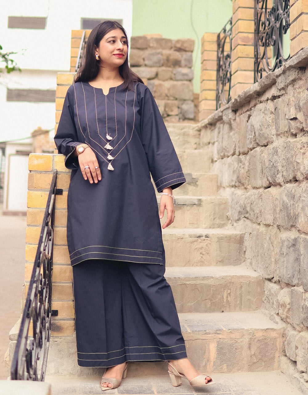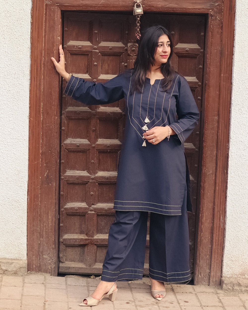 Upgrade your winter wardrobe with this Navy Blue Snug Fit Cotton 2-Piece Suit from the Rain Collection. Designed to deliver the perfect balance of comfort, warmth, and breathability, this outfit feels light on the skin while keeping you cozy during winter days. Its snug fit creates a clean and refined silhouette, making it an ideal choice for daily casual wear with simple, effortless elegance.